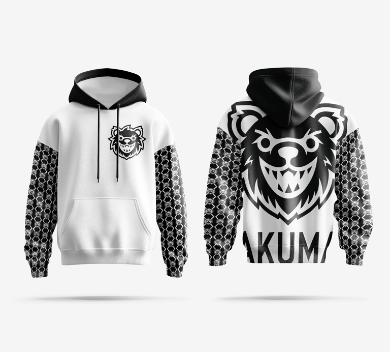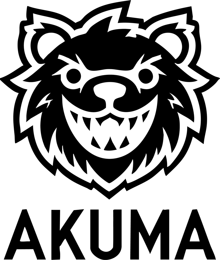 Akuma es un logotipo creado para una empresa de ropa y textiles. El logotipo se compone de un nombre con tipografía simple justo debajo del logo principal que tiene la forma de un oso. El oso hace referencia a que "Kuma" es "Oso" en español, y esta sonriendo de manera agresiva puesto que "Akuma" significa "Demonio".