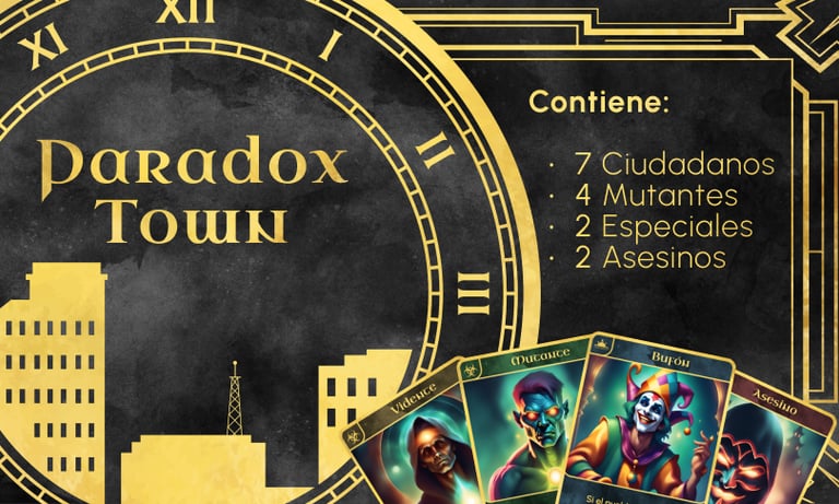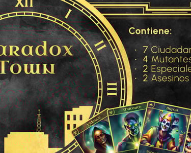 Paradox Town es el proyecto final de uno de los trabajos de formación mixta. Diseñe este juego de cartas con su completa idea de negocio e identidad corporativa. Basado en el popular juego de mesa "Los hombres lobo de Castro negro", esta idea refresca tanto el modo de juego como la imagen estética, añadiendo un toque de dificultad y adaptando todo el juego para varias modalidades y visiones de juego.